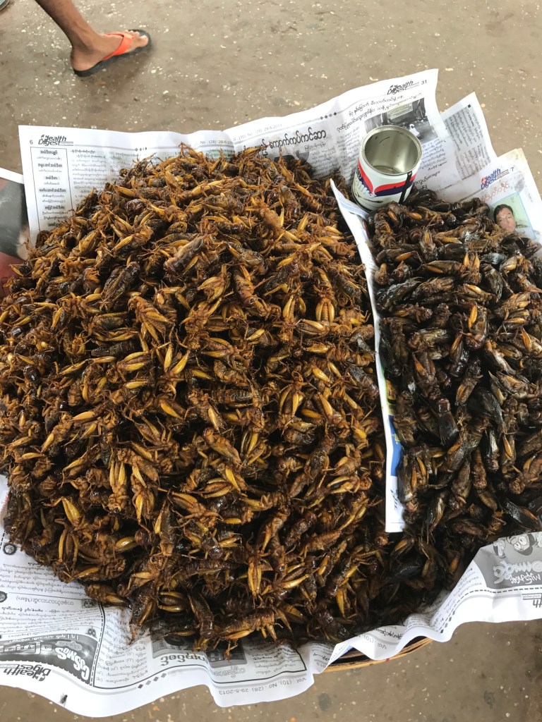 IMG_4711 Published August 6, 2017 at 3024 × 4032 in Running in South East Asia Pt 2: Yangon, Myanmar Crickets. Did not eat. Available snacks at a train station